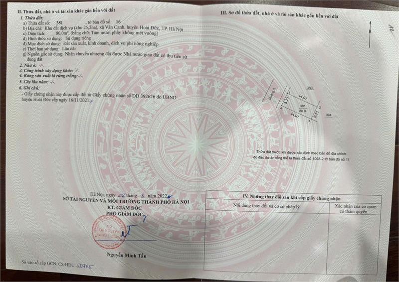 chính chủ cần bán gấp lô đất 80m2 Dịch Vụ khu 25.2ha Vân canh giá 15 tỷ